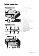 Projector exterior view 1. Front/upper side 1 2 3 4 6 7 8 9 5 Rear/lower side (MP615P) 11 10 12 14 13 15 16 2. 3. 4. 5. 6. 7. 8. 9. 10. 11. 12. 13. 14. 15. 16. 17. 18. 19. 20. 21. 22. 23. External control panel (See "Projector" on page 10 for details.