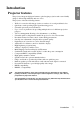 English Table of contents Important safety instructions .......................3 Introduction......................7 Projector features ................................. 7 Shipping contents................................. 8 Projector exterior view......................... 9 Controls and functions ....................... 10 Positioning your projector14 Choosing a location............................ 14 Obtaining a preferred projected image size........................................... 15 Connection ...