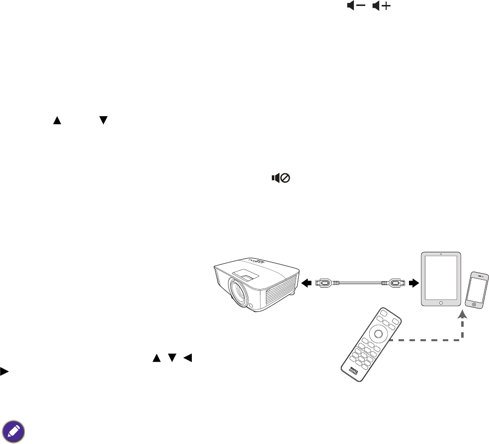 Als de MHL-modus is geactiveerd, hebben de toetsen op de projector dezelfde functies als de toetsen op de