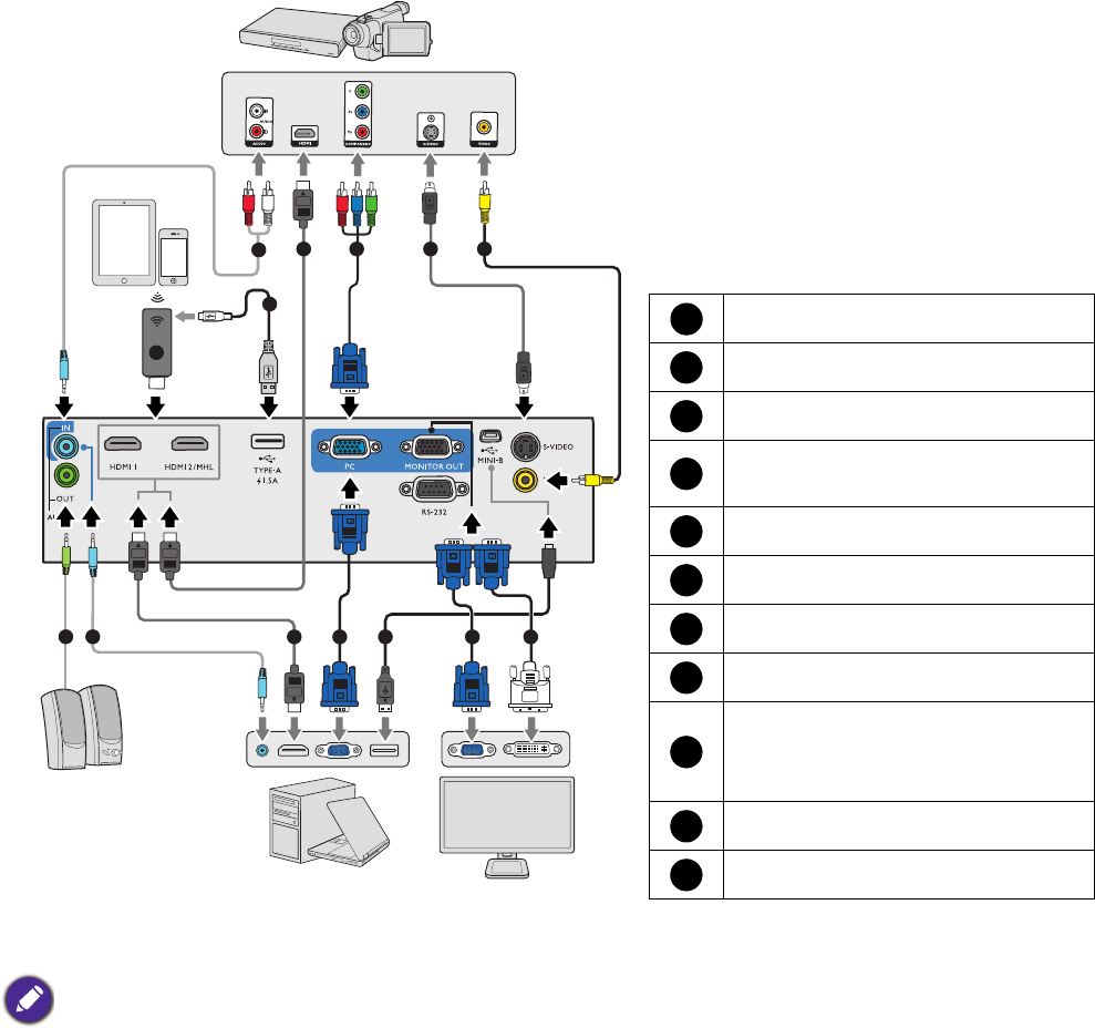 • Niet alle kabels die in de onderstaande verbindingen zijn weergegeven, worden bij de projector geleverd (zie
