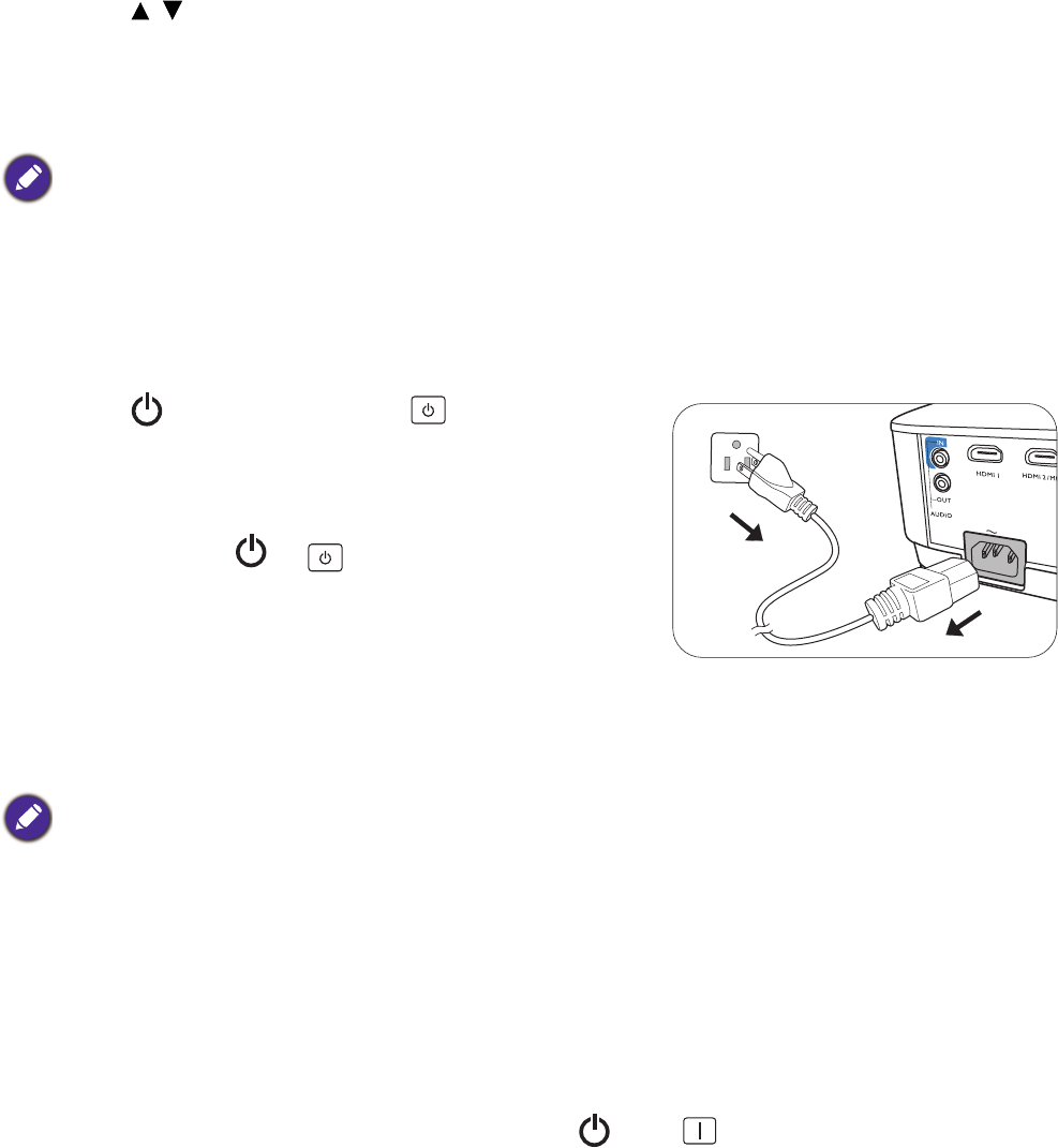 2. Druk nogmaals op of . De powerindicator