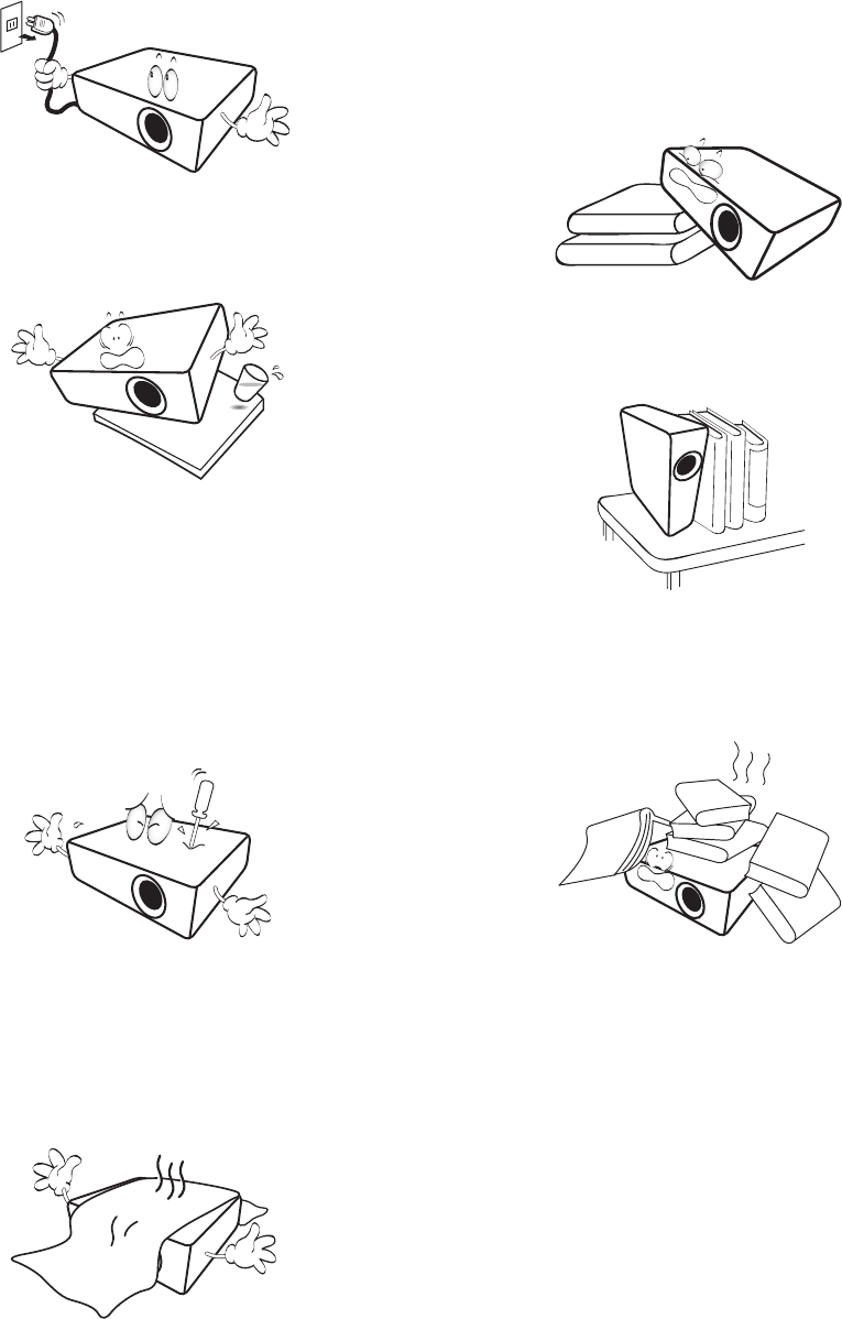 - Plaats deze projector niet op een deken, beddengoed