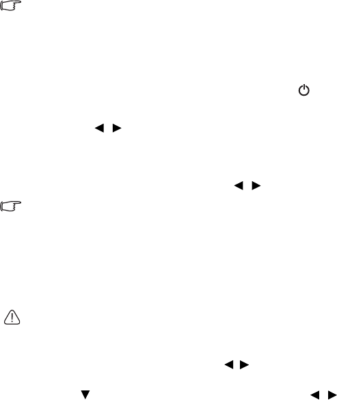 pressing / on the projector or remote control. A confirmation message