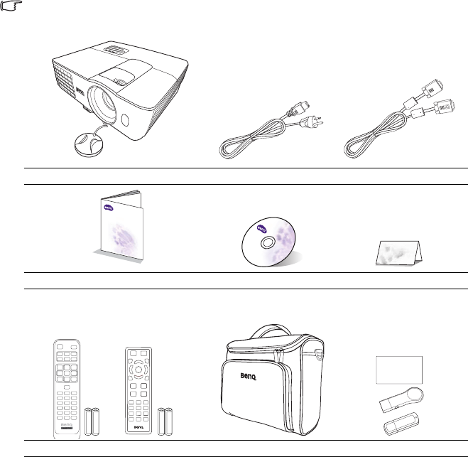 Carefully unpack and verify that you have all of the items shown below. If any of these items