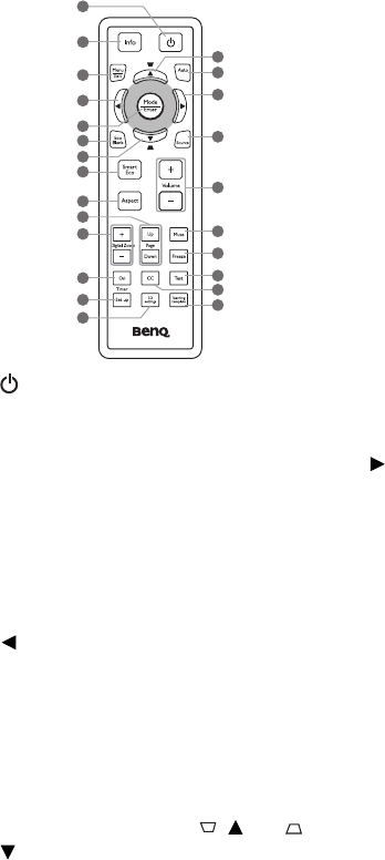 Toggles the projector between standby