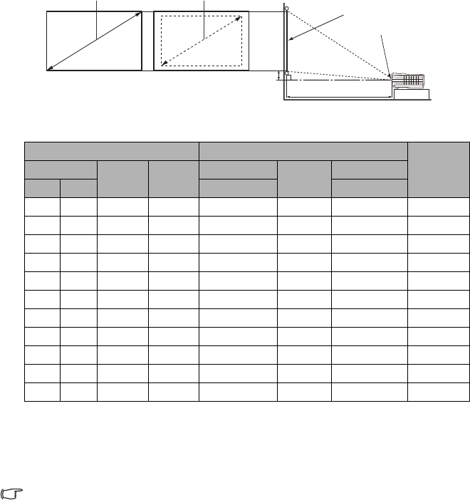 allowance for this projector's optical characteristics. This will help you determine the exact mounting position