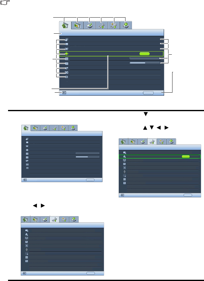 The projector is equipped with On-Screen Display (OSD) menus for making various