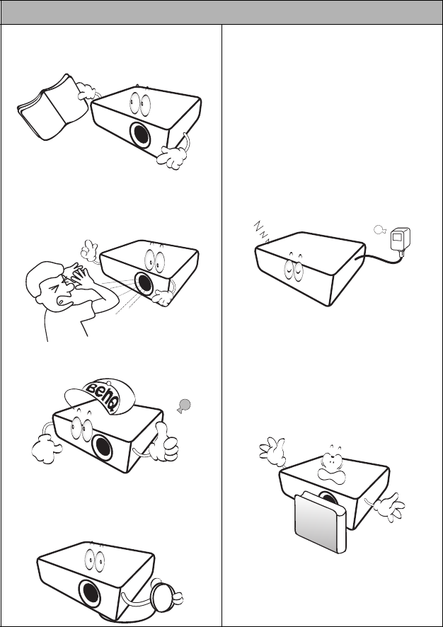 6. Do not block the projection lens with