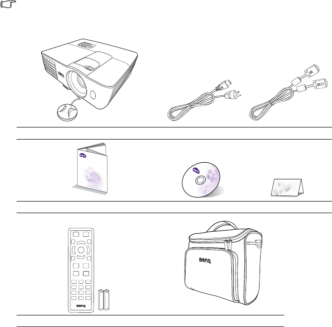 Carefully unpack and verify that you have all of the items shown below. If any of these items