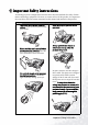 Safety Instructions 1. 2 The lamp becomes extremely hot during operation. Allow the projector to cool for approximately 45 minutes prior to removing the lamp assembly for replacement. 2. Do not operate lamps beyond the rated lamp life. Excessive operation of lamps beyond the rated life could cause them to explode on rare occasions. 3. Never replace the lamp assembly or any electronic components unless the projector is unplugged. Important Safety Instructions 4.