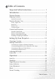 Table of Contents Important Safety Instructions ............................... 1 Introduction ........................................................... 5 Projector Features .........................................................................5 Shipping Contents .........................................................................6 Optional Accessories ......................................................................................7 Projector Exterior View ..................................