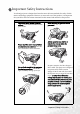 Safety Instructions (Continued) 11. Do not step on the projector or place any objects upon it. Besides probable physical damage to the projector, doing so may result in accidents and possible injury. 12. 4 Do not block the projection lens with any objects when the projector is under operation as this could cause the objects to become heated or deformed or even a fire. To temporarily turn off the lamp, press Blank on the projector or remote control. Important Safety Instructions 13.