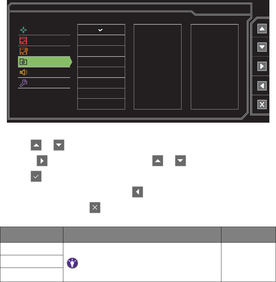 3. Select to go to a sub menu, and then use or to select a menu item.