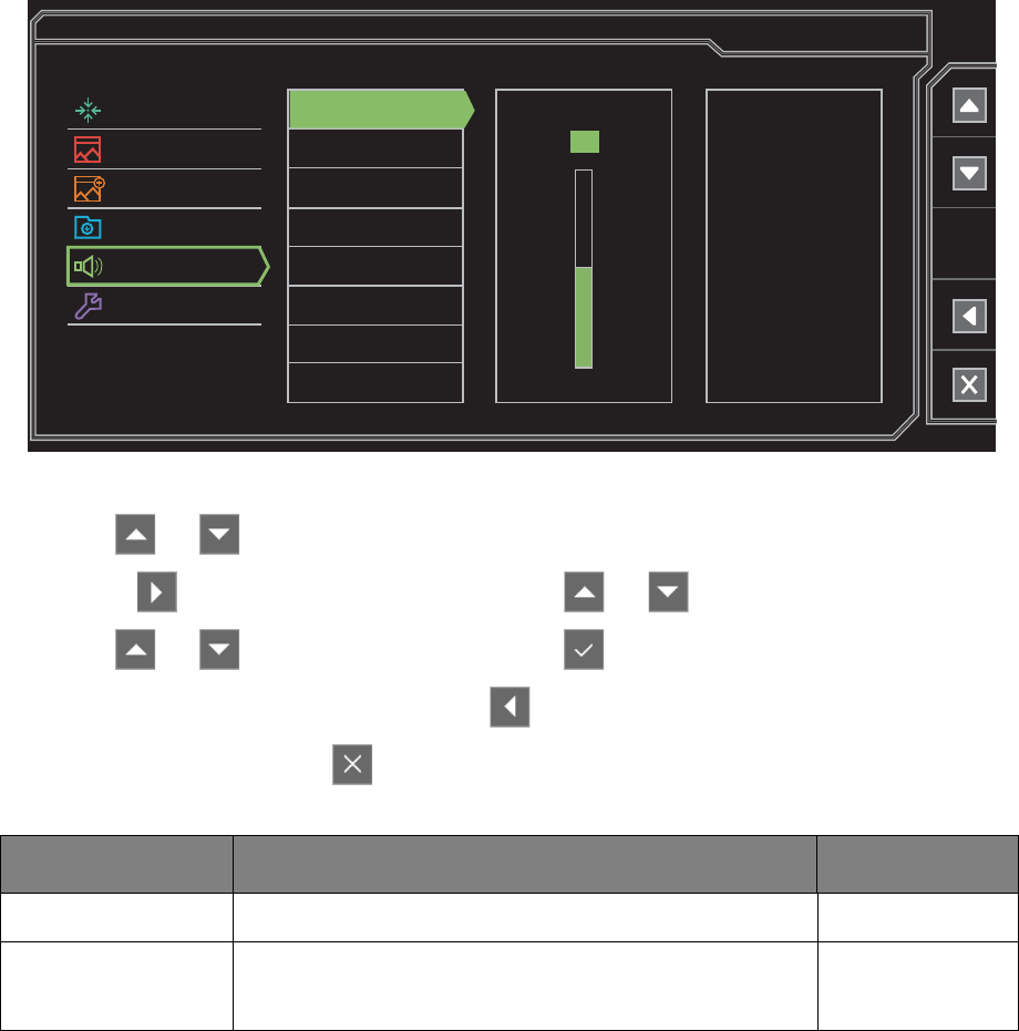3. Select to go to a sub menu, and then use or to select a menu item.