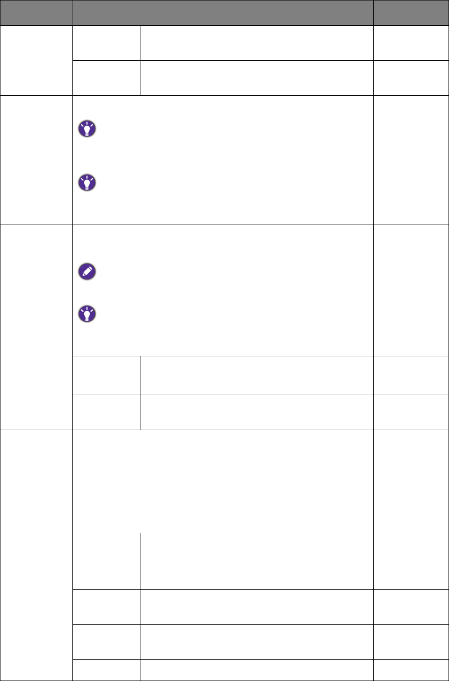 If the input source is HDMI, color format is not selectable. In other