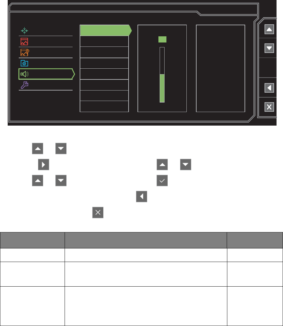3. Select to go to a sub menu, and then use or to select a menu item.