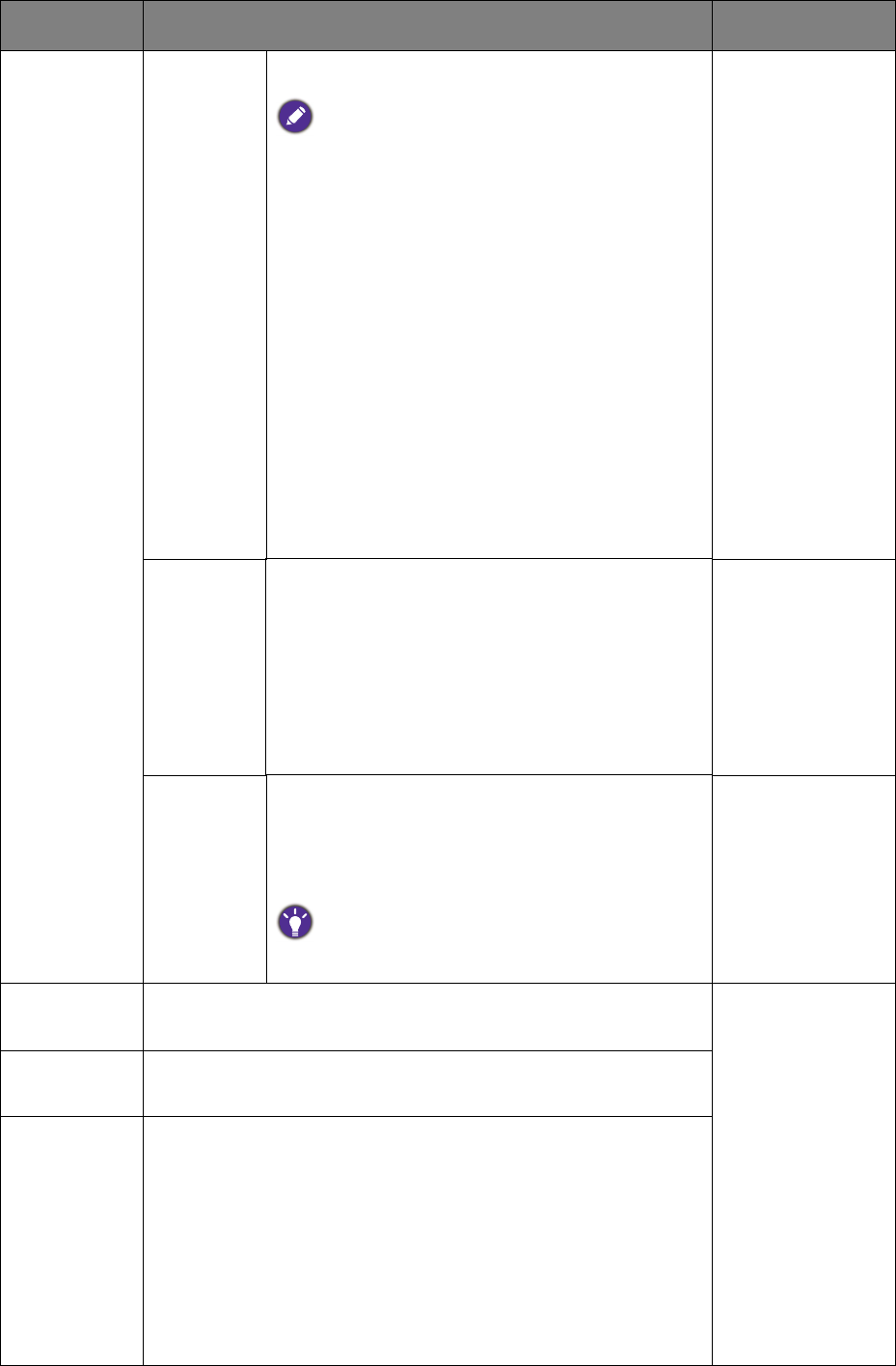 Adjusts the display time of the OSD menu. • 5 Sec.