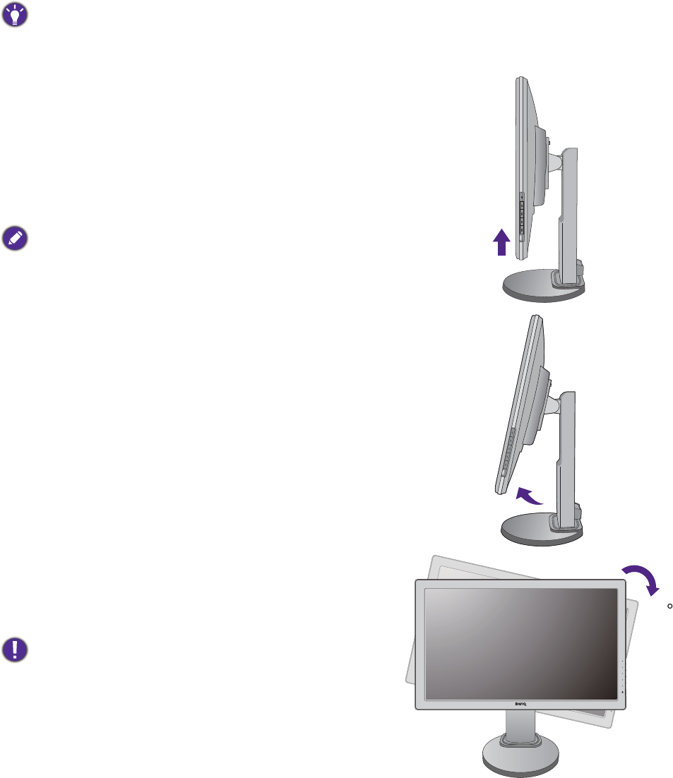 Bevor Sie den Monitor mit einer Hochformatausrichtung drehen, müssen Sie die Anzeige um 90 Grad