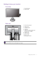 Getting to know your monitor Front view 1. Control buttons 2. Power button 1 2 Back view 3. 4. 5. 6. 7. AC power input jack Audio Line In Headphone jack Cable clip HDMI out socket (Available when the input source is HDMI.) 8. HDMI socket 9. DVI-D socket 10. D-Sub socket 11. Kensington lock slot 3 4 5 6 7 8 9 10 11 • Above diagram may vary depending on the model. • Picture may differ from the product supplied for your region.