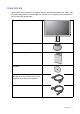 Erste Schritte Überprüfen Sie beim Auspacken, ob folgende Teile im Lieferumfang enthalten sind. Sollten Teile des Lieferumfangs fehlen oder beschädigt sein, wenden Sie sich umgehend an den Händler, bei dem Sie die Ware gekauft haben. BenQ LCD-Monitor Monitorsockel Schnellstartanleitung CD-ROM Netzkabel (Das Bild kann sich von dem an Ihrem Ort ausgelieferten Produkt unterscheiden.