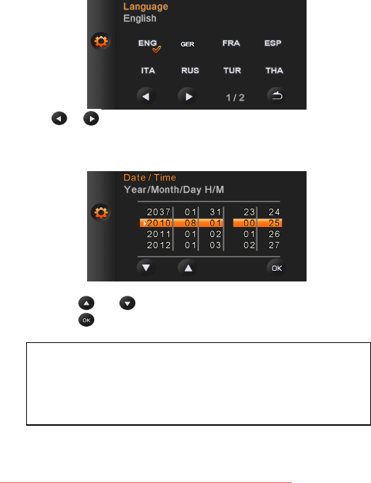 on the language icon (Example: [ENG]) to select and confirm.