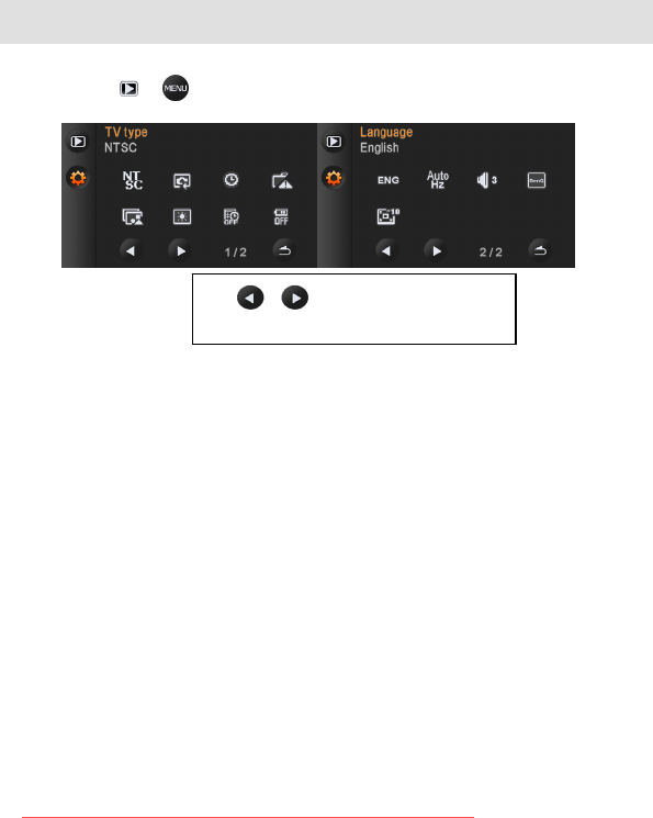 Press the relevant icon to choose between [NTSC] and [PAL].