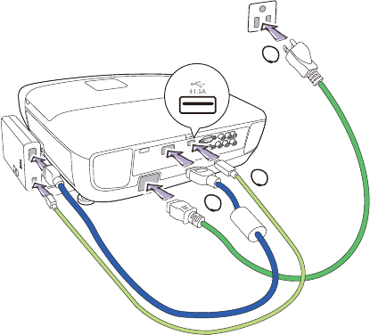 2. Attach the receiver to your projector and connect power. See Setting up the receiver (Rx) on