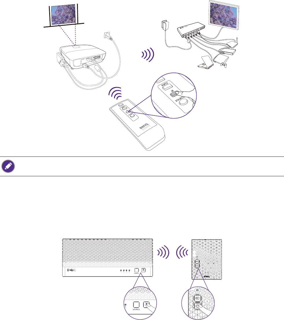 5. Aim the source device’s remote control at the receiver and press buttons to see if the device