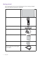 Getting started When unpacking please check you have the following items. If any are missing or damaged, please contact the place of purchase for a replacement. BenQ LCD Monitor Monitor Stand Monitor Base S Switch (Swift Switch) Quick Start Guide CD-ROM Power Cord (Picture may differ from product supplied for your region.