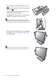 Rotating the monitor 1. Pivot the display. Before rotating the monitor with a portrait viewing orientation, the display has to be rotated 90 degrees. Right-click the desktop and select Screen resolution from the popup menu. Select Portrait in Orientation, and apply the setting. Depending on the operating system on your PC, different procedures should be followed to adjust the screen orientation. Refer to the help document of your operating system for details. 2. Fully extend the monitor and tilt it.