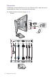 6. Connect USB devices. Connect the USB cable between the PC and the monitor (via the upstream USB port at the back). This upstream USB port transmits data between the PC and the USB devices connected to the monitor. TV OUT SDIF-OUT PDIF-OUT Connect USB devices via other USB ports (downstream) on the monitor. These downstream USB ports transmit data between connected USB devices and the upstream port. See picture on the right. 7. Connect the power cable to the monitor.