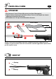 LAUFREINIGUNG DE ACHTUNG • Schieben Sie den Stab niemals mit Gewalt in den Lauf, dies kann Beschädigungen verursachen. • Reinigen Sie gelegentlich die äußeren Metallteile. Benutzen Sie dazu ein Tuch, auf das Sie leicht Waffenöl aufgetragen haben. • Geben Sie niemals das Waffen-Öl direkt in den Lauf. 1. Baumwollstreifen 2. 1 cm 3 cm 3. 4. Sichern Sie die Waffe. Nehmen Sie einen ca. 30 cm dünnen, langen Stab.