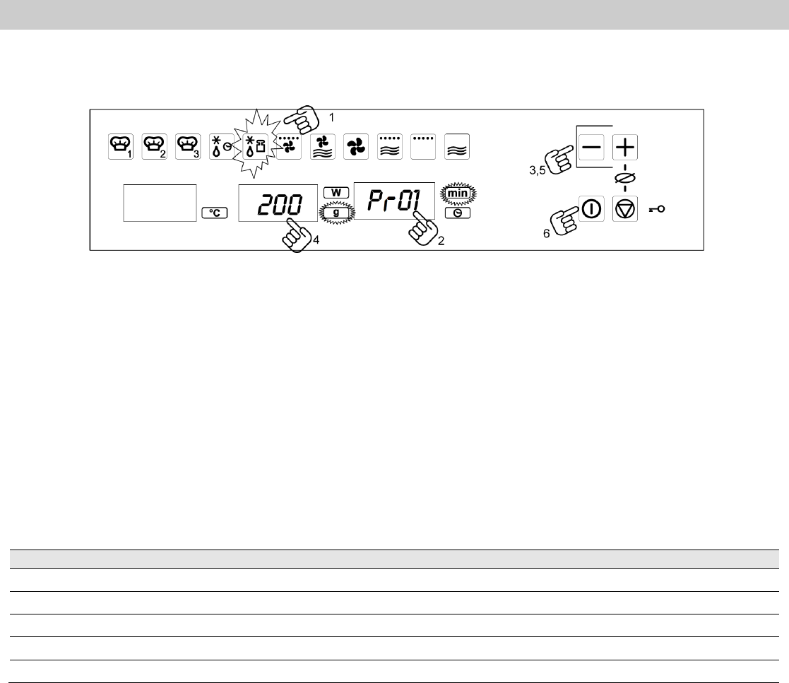 Die folgende Tabelle zeigt die Programme der Funktion Auftauen nach Gewicht, unter Angabe der