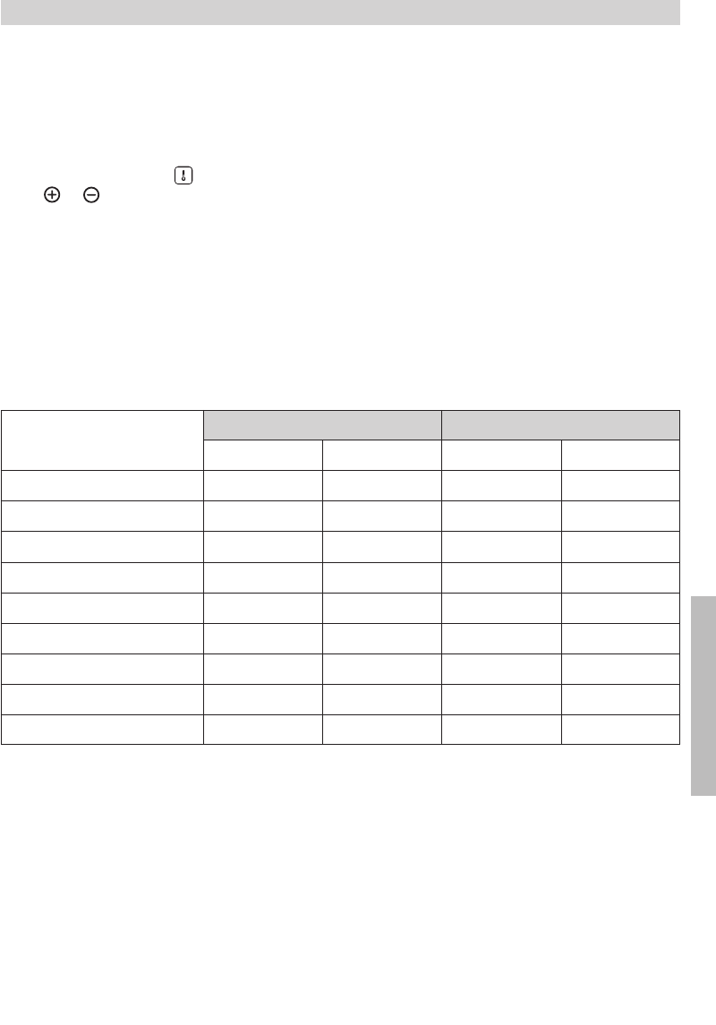 Los tiempos mostrados en la tabla son una orientación, donde el tiempo de descongelación depen-
