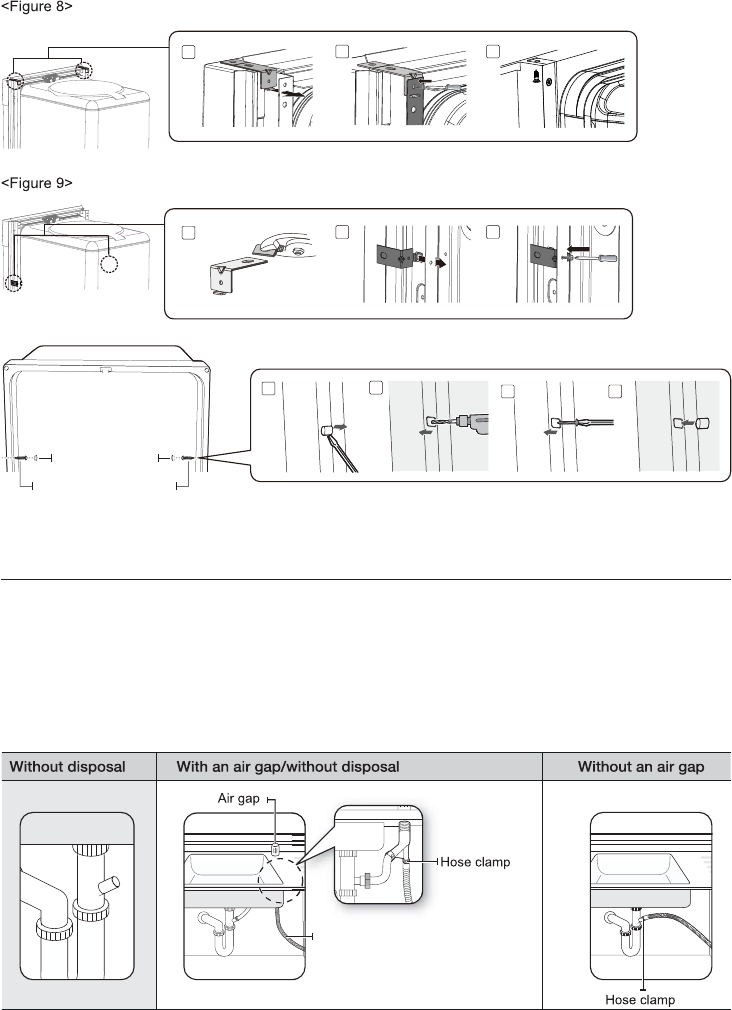 shown in the following figures. You must connect the drain hose in accordance with the water pipe