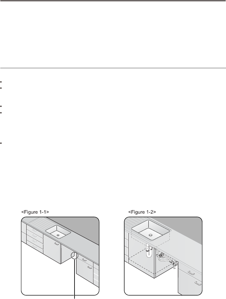 1. Using a hole saw, cut a hole into the side of the cabinet that hold the sink as shown in Figure