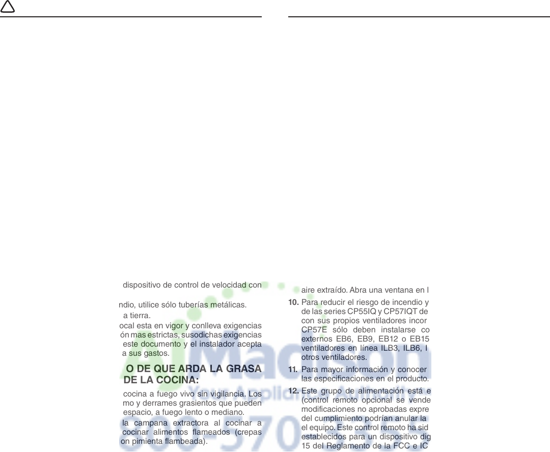 7. Para reducir los riesgos de incendio y extraer el aire debidamente,