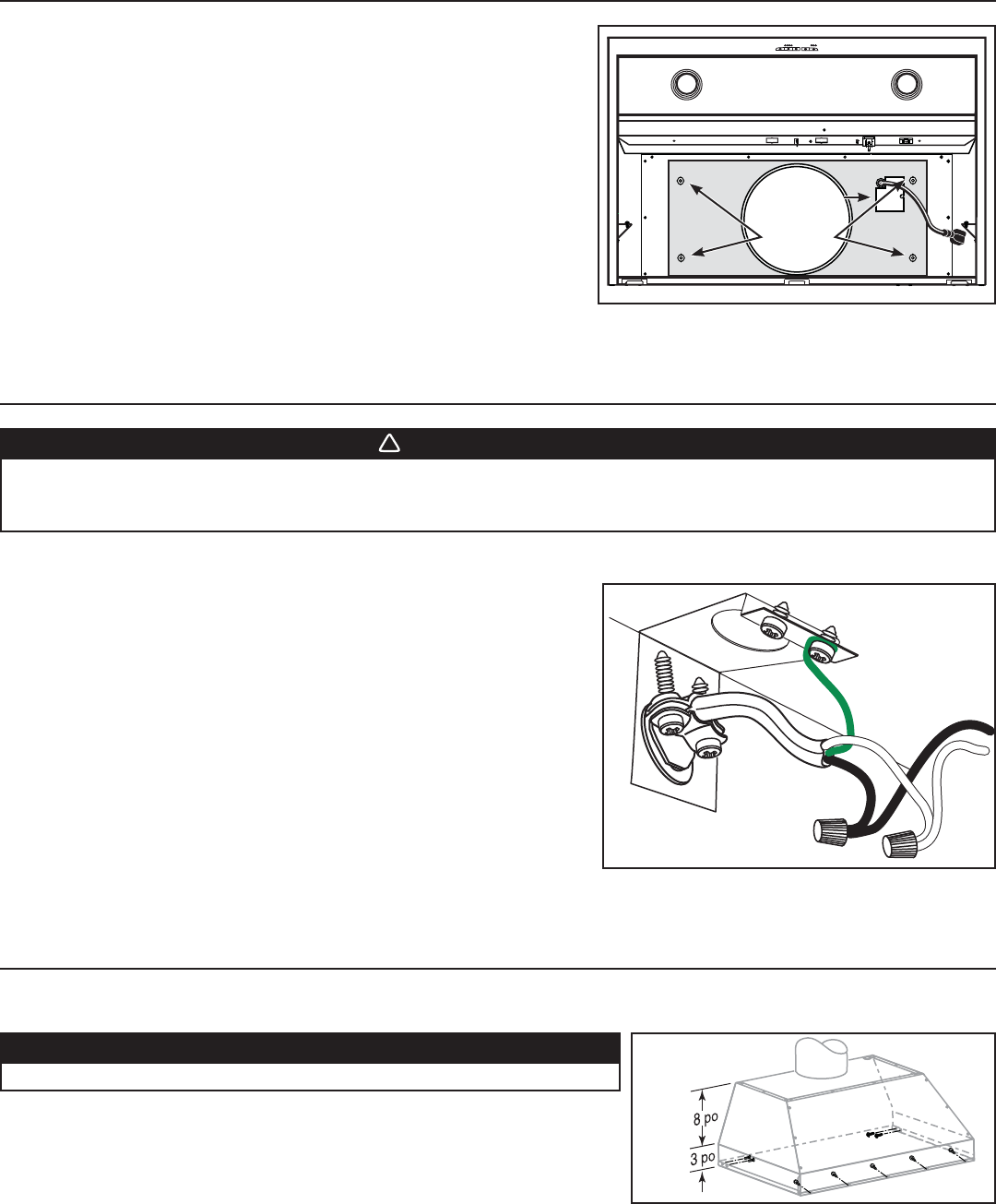 Utiliser les vis restantes pour fixer l’avant de la hotte encastrable. (Voir l’illustration