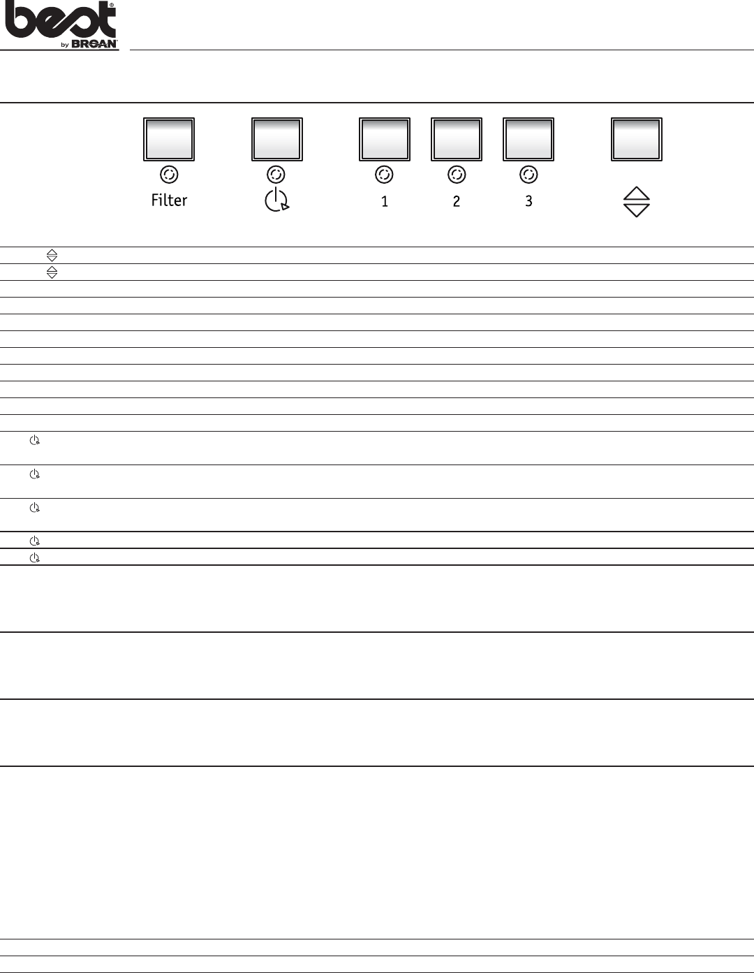Filter Up or Down On or Off Filter LED illuminates as a reminder to clean Filters (approx. every 30 hours).