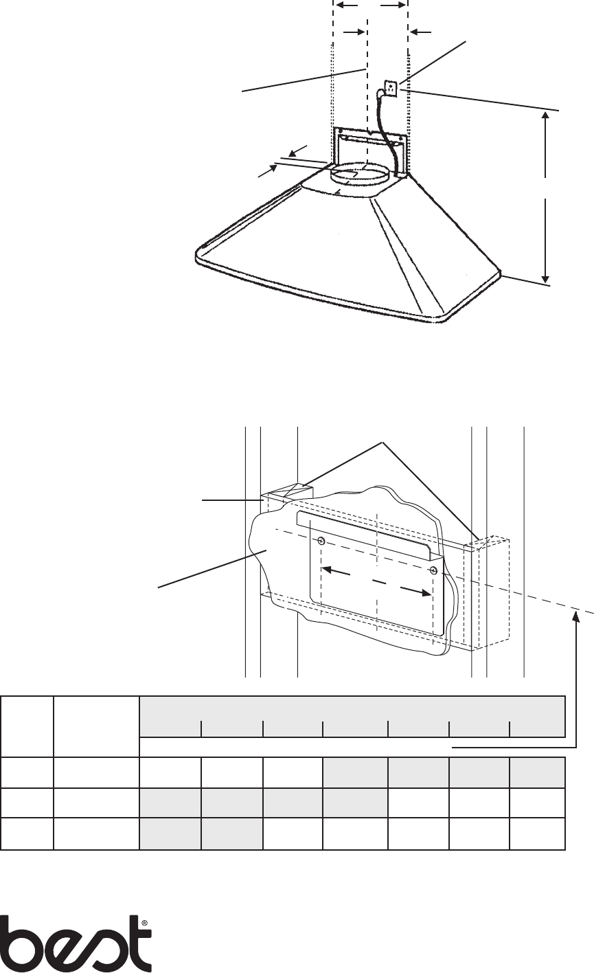 MOUNTING BRACKET LOCATION ABOVE 36” HIGH COOK TOP
