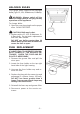 INSTALL THE HOOD NOTE: At least three people will be required to mount the hood. 1. Raise the hood up into the wall cabinet. Adjust brackets to contact inside walls of the cabinet. 2. Make sure the front edge of the hood drawer support is aligned with the front of the wall cabinet. Center the hood on the wall cabinet. 3. Tighten the (4) mounting bracket machine screws previously installed. FRONT EDGE OF CABINET FRONT EDGE OF DRAWER SUPPORT DRAWER CENTERED 4. Fasten the hood to the cabinet with (8) 4.