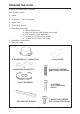PREPARE THE HOOD Unpack hood and check contents. You should receive: 1 - Hood 1 - 8” Damper / Duct Connector 1 - Glass Visor 1 - Decorative Spacer 1 - Parts Bag containing: 2 - Mounting Brackets 4 - Machine Screws (M4 x50mm Pan Head) 4 - Flat Washers (4mm diameter) 7 - Screws (3.9 x 9.5mm Pan Head) 8 - Screws (4.8 x 12mm Pan Head) 1 - Installation Instructions 1 - Warranty Card 8” DAMPER/DUCT CONNECTOR GLASS VISOR 4 MACHINE SCREWS (M4 X 50mm PAN HEAD 2 MOUNTING BRACKETS 4 FLAT WASHERS 8 SCREWS (4.