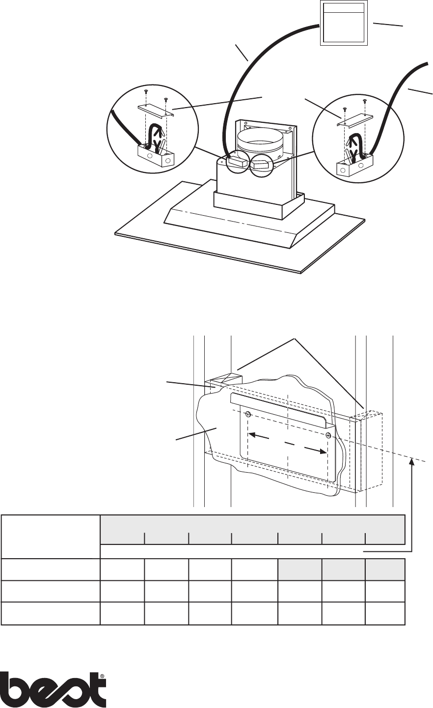 MOUNTING BRACKET LOCATION ABOVE 36” HIGH COOK TOP