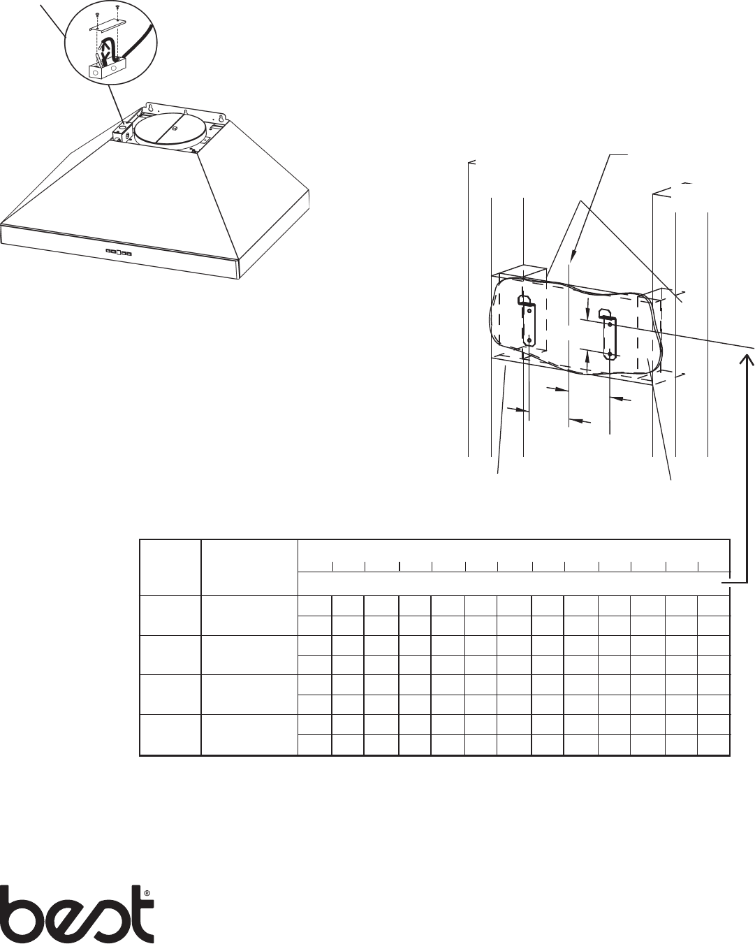 MOUNTING BRACKET CENTER HOLE LOCATION ABOVE 36” HIGH COOK TOP