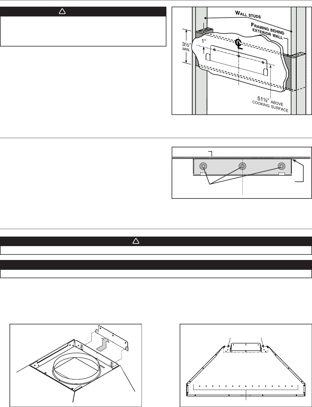 BE CAREFUL when installing the decorative flue and hood, they may have sharp edges.