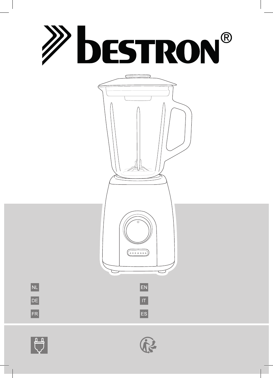 Handleiding blender Instruction manual blender Gebrauchsanweisung Standmixer Istruzioni per l’uso blender Mode d’emploi blender Manual del usuario blender 1000W, 220 - 240V ~ 50/60Hz v200716-07 ABL300EVB ABL300EVM ABL300EVP ABL300EVV
