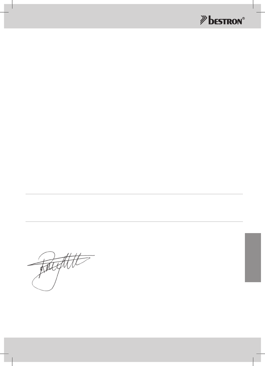 10.Per reclamare la garanzia, potete rivolgervi al vostro negoziante. Bestron offre anche la possibilità