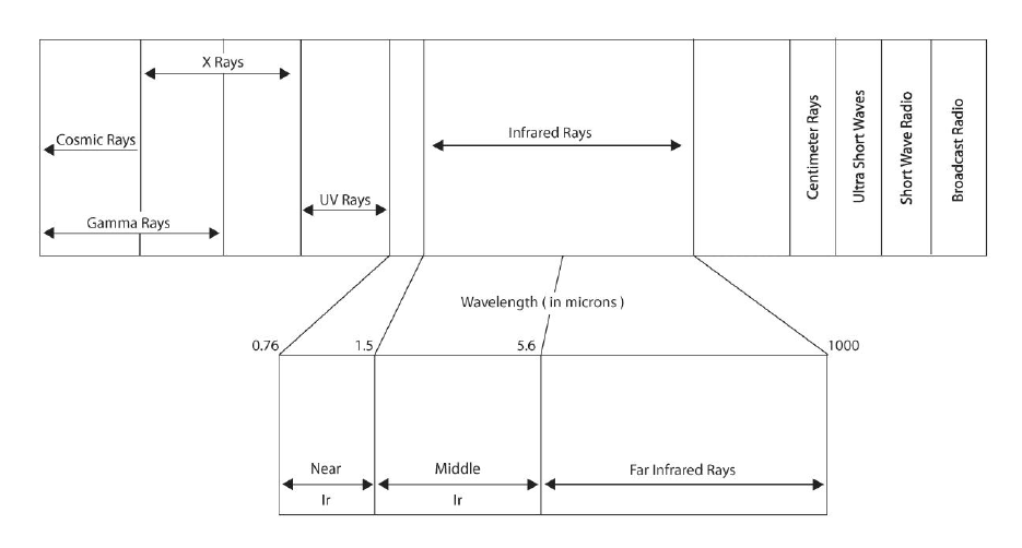 microns; middle infrared: 1.5-5.6 microns; and far infrared: 5.6-1000 microns. Among these segments, only