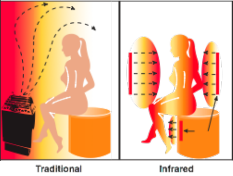 Infrared Saunas differ from traditional saunas in that they use infrared radiant energy to directly penetrate into