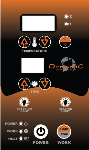 Work Start/Stop: Press to control the working functions of the sauna